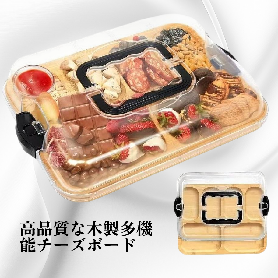 木製多機能チーズボード 竹製仕切りトレイ ピクニックレストラン用フルーツプレート