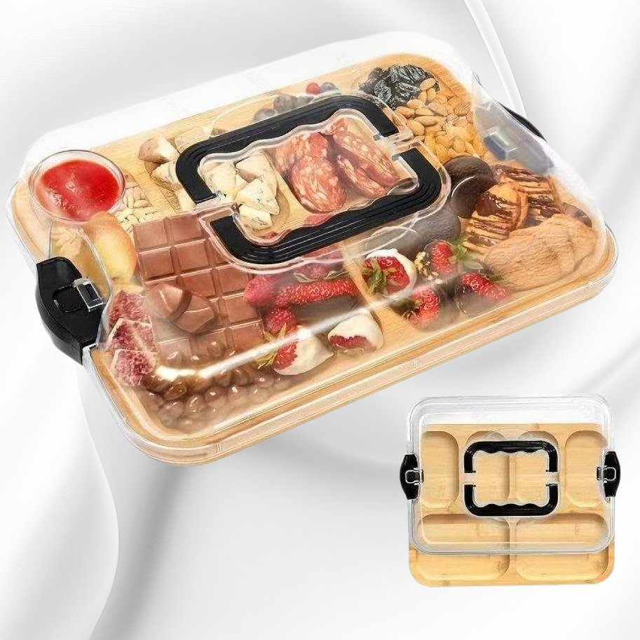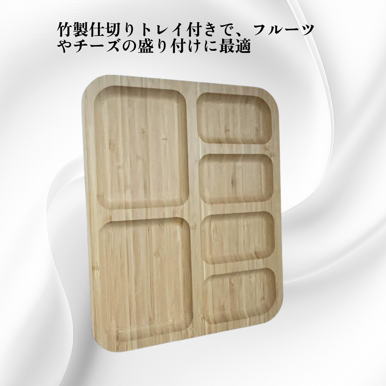 竹製の仕切り付きチーズボードは、多機能でフルーツやおつまみの盛り付けに最適。ピクニックやレストラン用に便利で、耐久性と衛生面にも優れています。